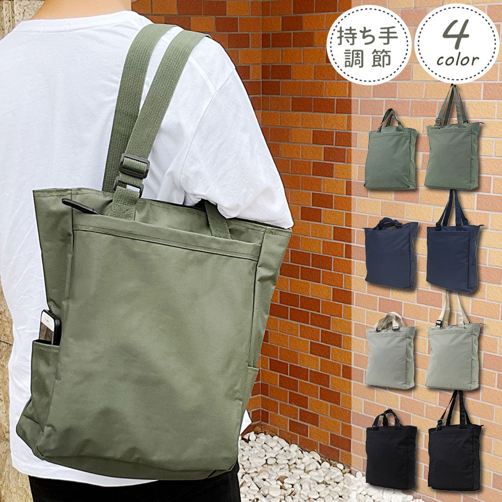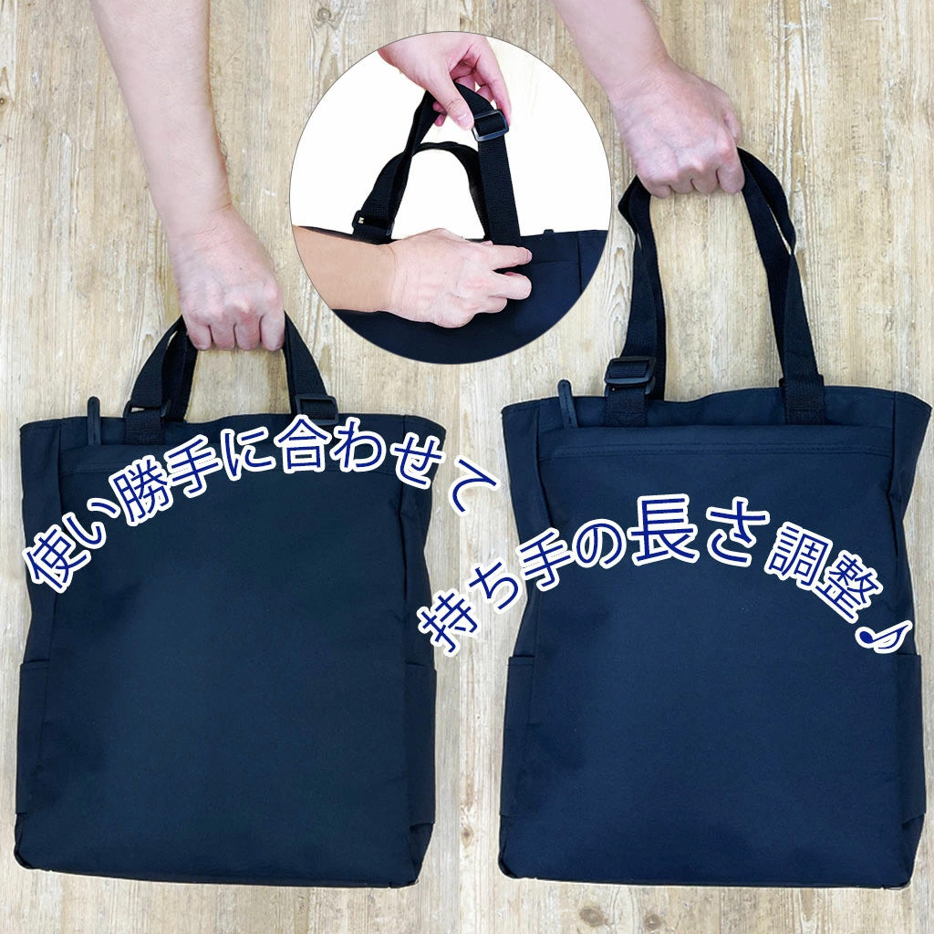 ●仕様: 両側面ポケット付・持ち手長さ調整可能・正面ファスナーポケット付